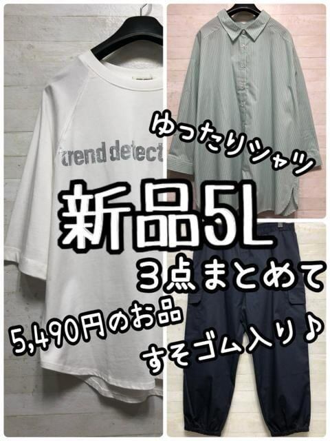 新品☆5L♪5分ラグラン・シャツ・裾ゴムのカーゴパンツをセットで♪☆G862