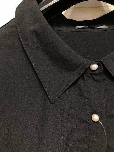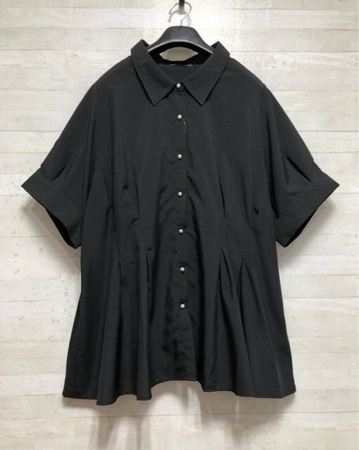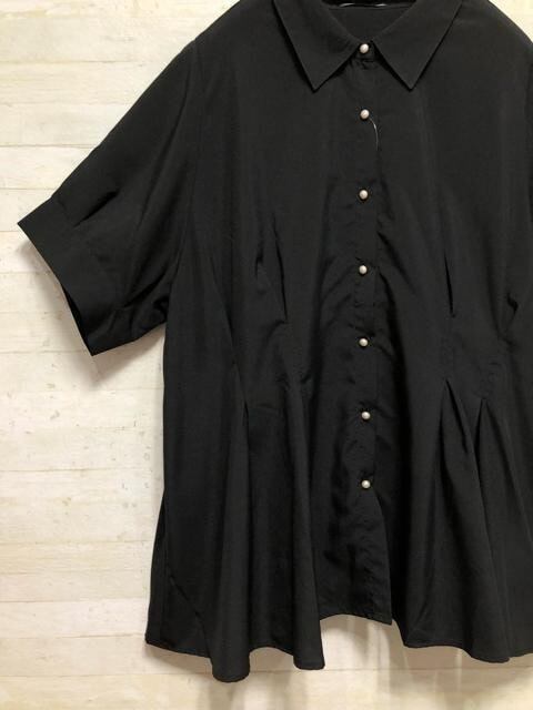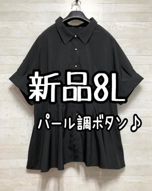 新品☆8L♪黒系♪パール調ボタン♪半袖ブラウス☆G867