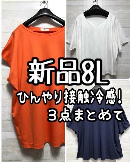 新品☆8L♪ひんやり接触冷感♪半袖トップス3枚まとめて♪きれいめも☆G872