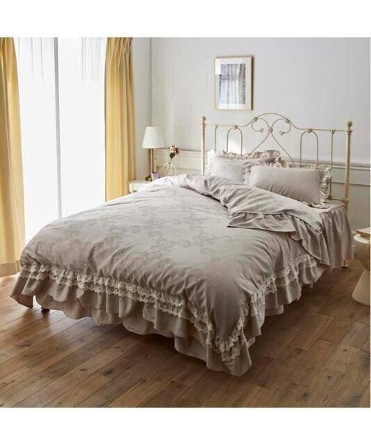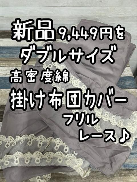 新品☆ダブル高密度綿サテン♪フリルレース掛け布団カバー9449円を☆Q184