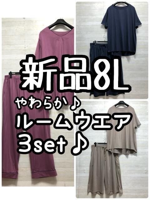 新品☆8L♪ルームウエア上下3セット♪Tシャツ・ガウチョ・パジャマ☆G976