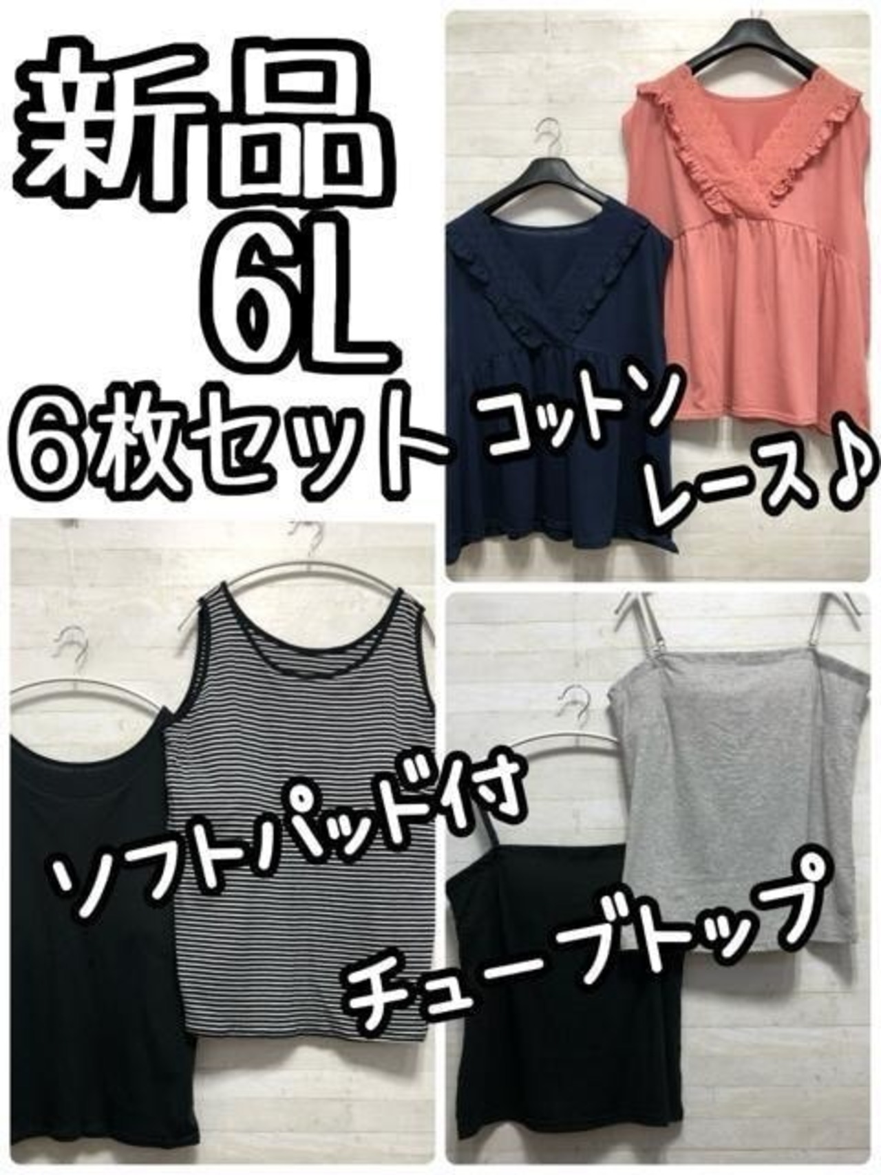 新品☆6L♪ソフトカップ付タンクトップやベアトップなど6枚セット♪☆G987