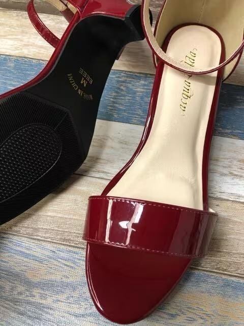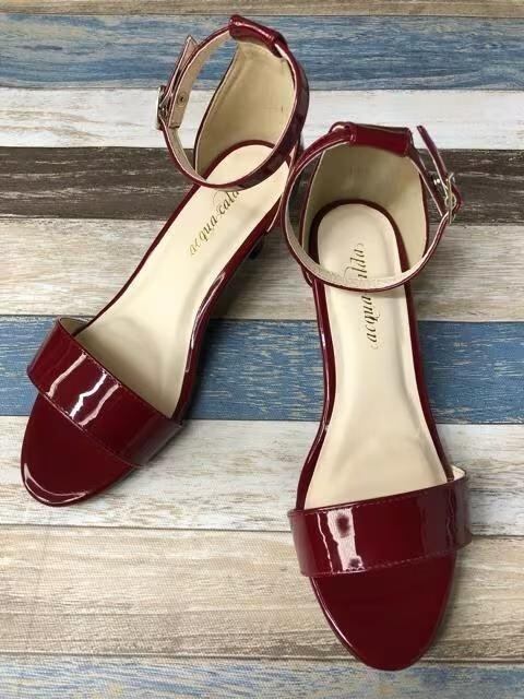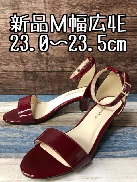 新品☆M23~23.5㎝幅広4E♪ワイン系きれいめサンダル♪エナメル☆Q183