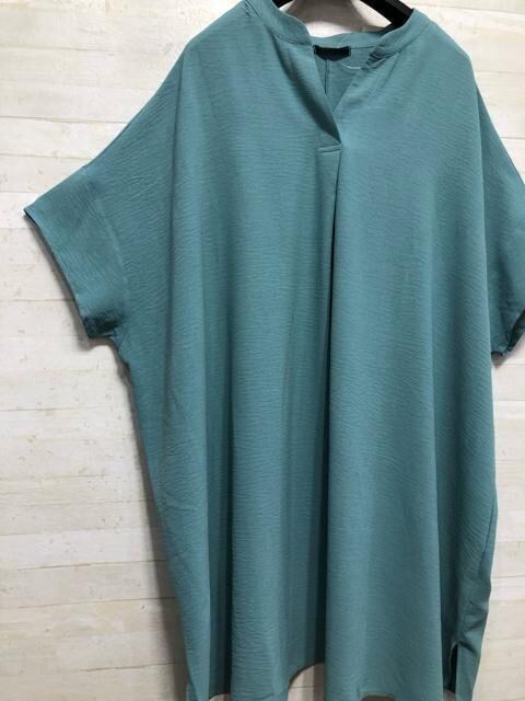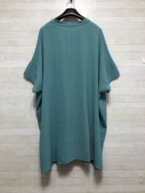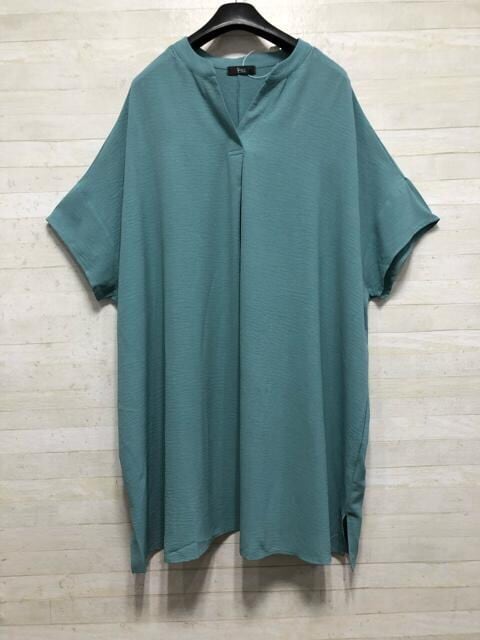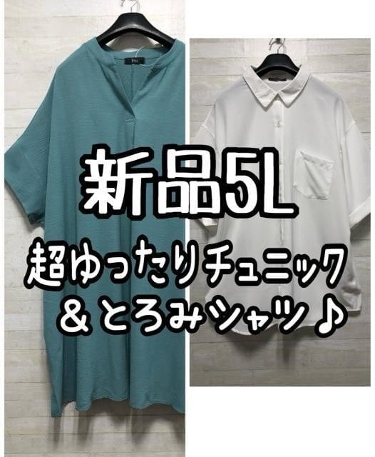 新品☆5L♪グリーン超ゆったりチュニックワンピ&白半袖シャツ☆G895