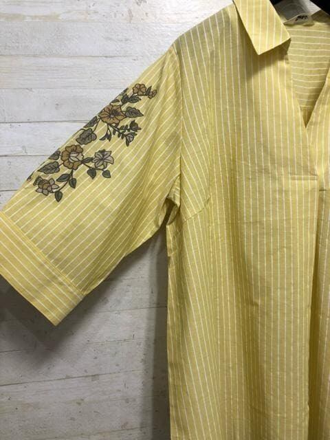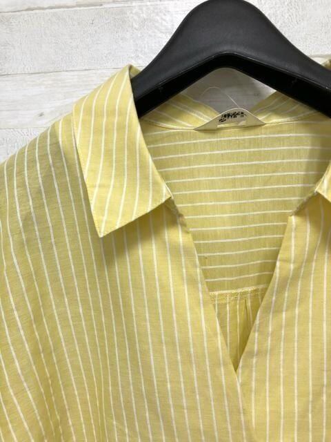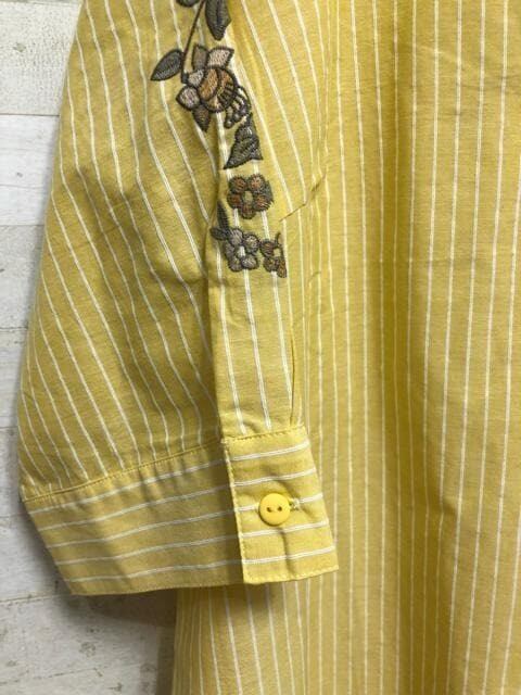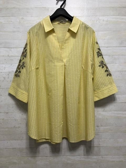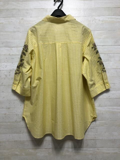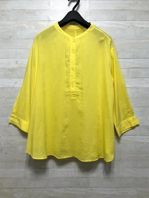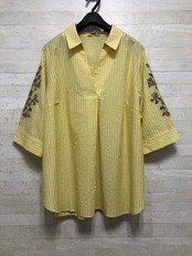 新品☆3L♪イエロー系♪7分袖シャツ2枚!麻混&刺しゅう入り♪☆G903
