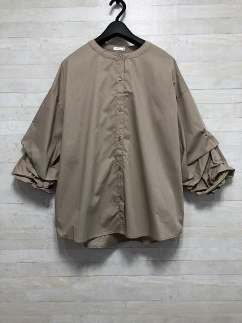 袖のシャーリングデザインが素敵な