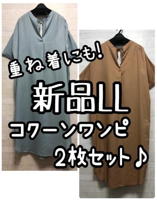 新品☆LL♪重ね着カワイイゆったりコクーンワンピース2枚セット♪☆Q192
