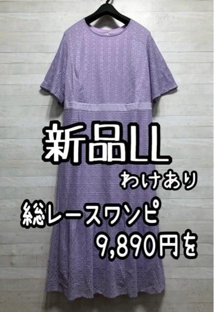 新品☆LL♪パープル系レースきれいなロングワンピース♪わけあり☆G937