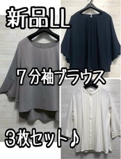 新品☆LL♪7分袖のきれいめブラウス3枚まとめて♪お出かけ・お仕事☆G943