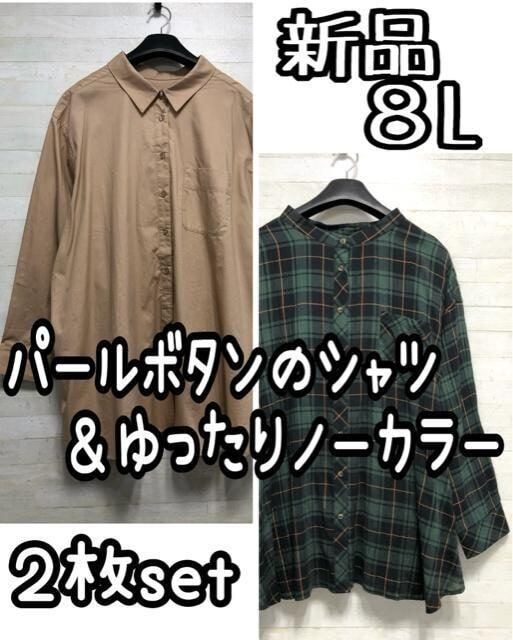 新品☆8L♪おしゃれ♪きれいめ綿シャツ&チェックゆったりブラウス♪☆Q250