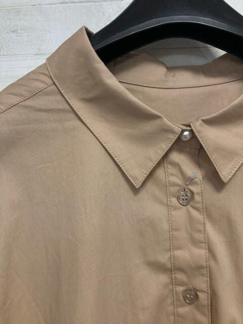 第一ボタンと袖のボタンがパール調で素敵な