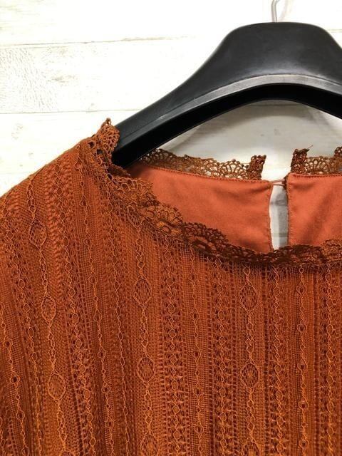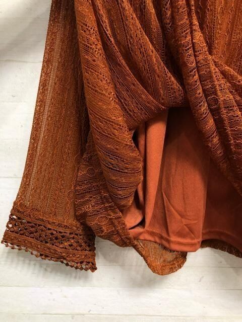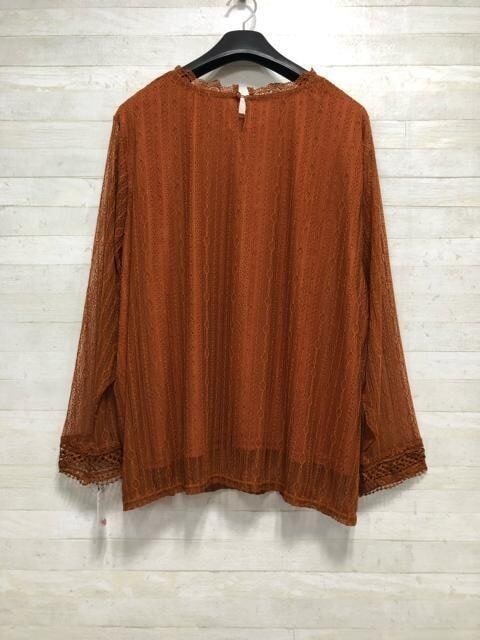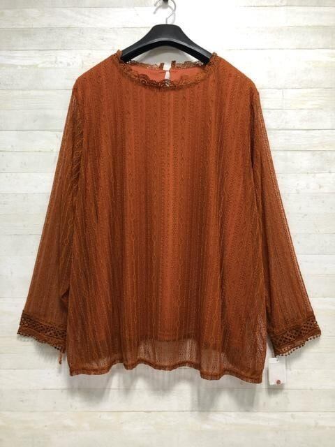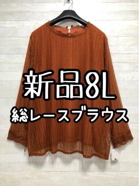 新品☆8L♪ブラウン茶系♪総レースのブラウス♪きれいめコーデ♪☆Q251