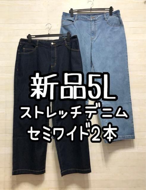 新品☆5L♪ストレッチワイドデニムパンツ2本セット♪股下73cm☆Q266