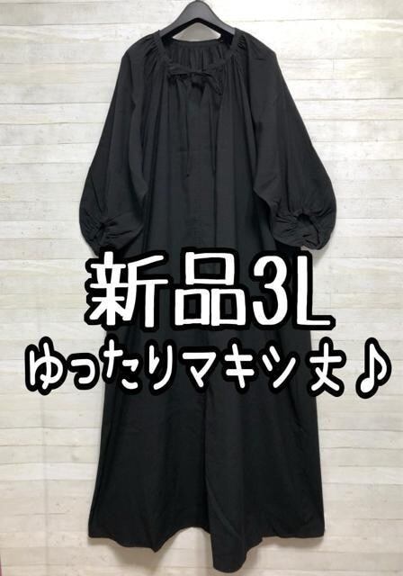 新品☆3L♪黒マキシ丈ゆったりワンピース♪フェミニンおしゃれ♪☆Q267