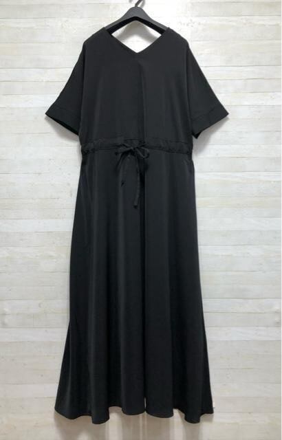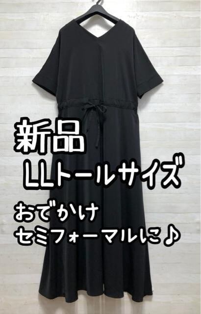 新品☆LLトールサイズ♪黒無地マキシワンピース♪セミフォーマルにも☆G934