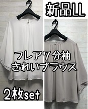 新品☆LL♪グレージュ&白系♪きれいめフレア7分袖ブラウス2枚♪☆G945