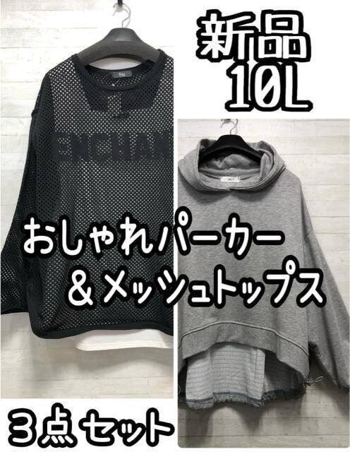 新品☆10L♪後ろ長いビッグパーカー&メッシュニットなど3枚♪☆Q255