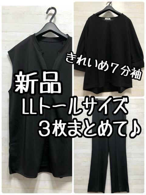 新品☆LLトールサイズ♪黒カットソー素材ウエア3枚まとめて♪きれいめQ272