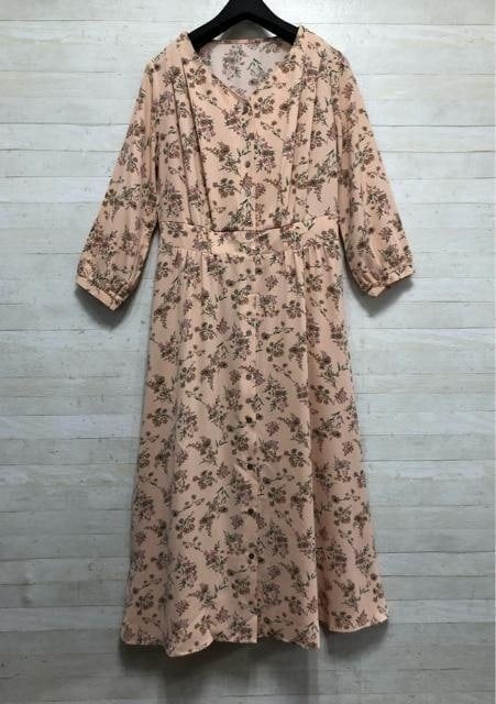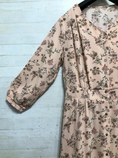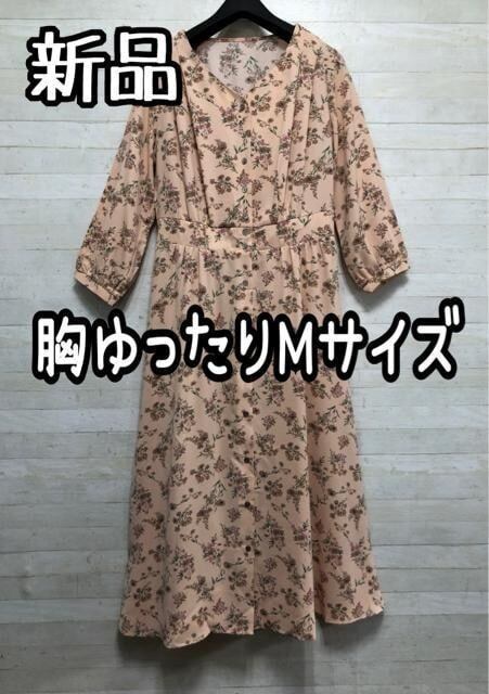 新品☆胸ゆったりMサイズ♪ピンク系花柄ワンピース♪7,138円を♪☆Q274