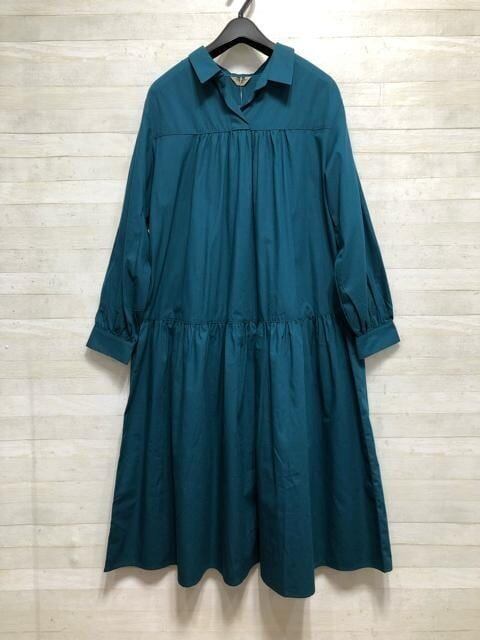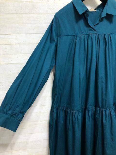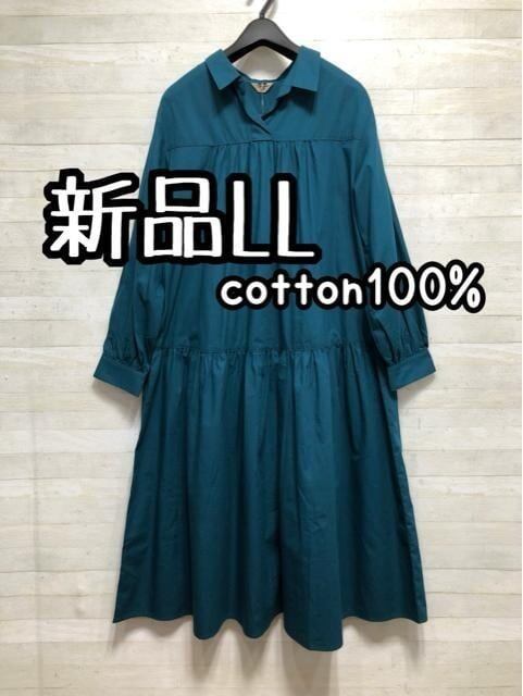 新品☆LL♪ブルーグリーン系♪長袖ティアードワンピース♪☆Q303