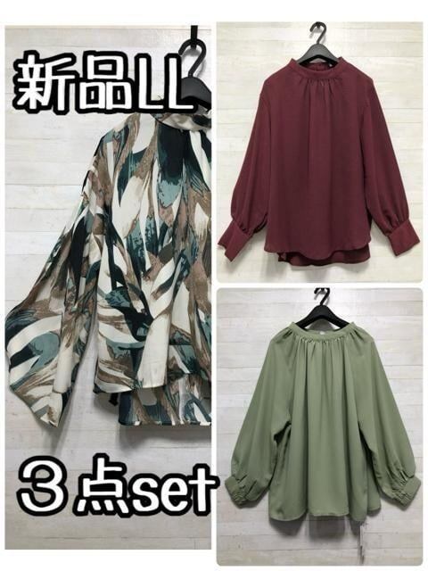 新品☆LL♪袖スリット入ブラウス等おしゃれブラウス3枚まとめて♪☆Q323