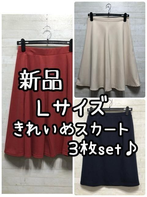 新品☆L♪きれいめ♪フレアスカート2枚+楽ちんタイトスカート♪☆Q336