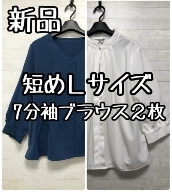新品☆短めLサイズ♪7分袖きれいめブラウス2枚セット♪おでかけ☆Q341