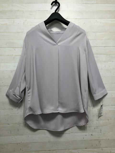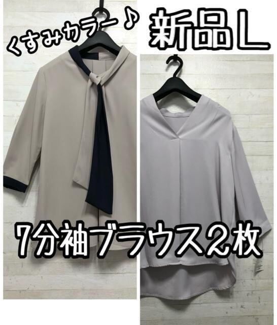 新品☆L♪くすみカラーきれいめ7分袖ブラウス2枚♪ボウタイも♪☆Q342
