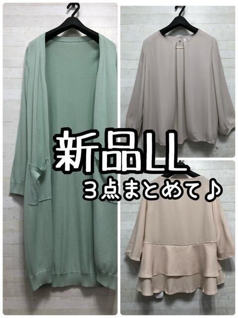新品☆LL♪きれいめブラウス2枚+ロングカーディガンをまとめて♪☆Q349