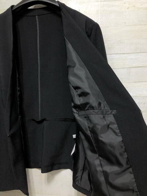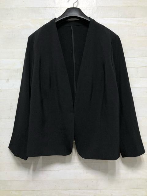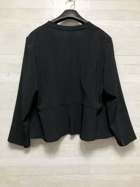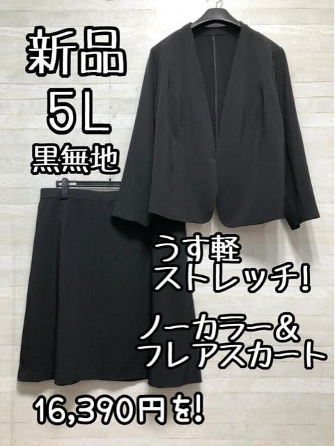 新品☆5L♪黒無地ノーカラージャケットのスカートスーツ♪うす軽☆Q425
