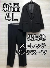 新品☆4L♪黒無地パンツスーツ♪ストレッチ♪ストレートパンツ☆Q426
