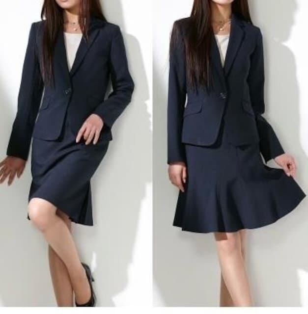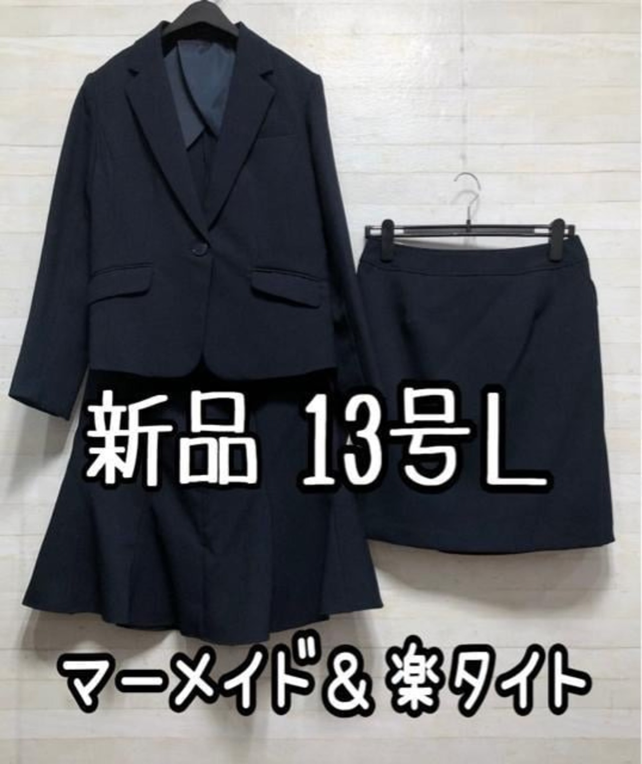 新品☆13号Lサイズ♪紺無地お仕事スーツ♪2スカート♪マーメイド☆Q428