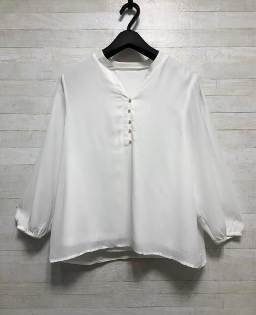 パール調飾りがきれいな7分袖ブラウス♪