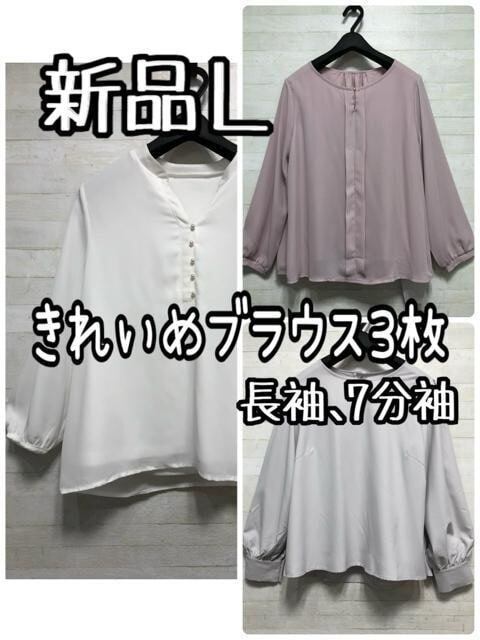 新品☆L♪きれいめブラウス3枚まとめて♪長袖・7分袖♪上品ブラウス☆Q377