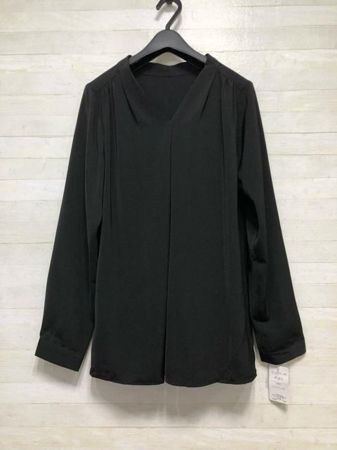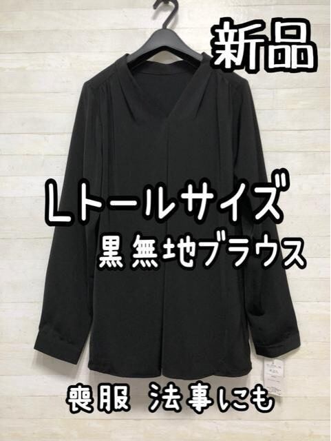 新品☆Lトールサイズ♪きれい黒Vネックブラウス♪法事・喪服にも☆Q394