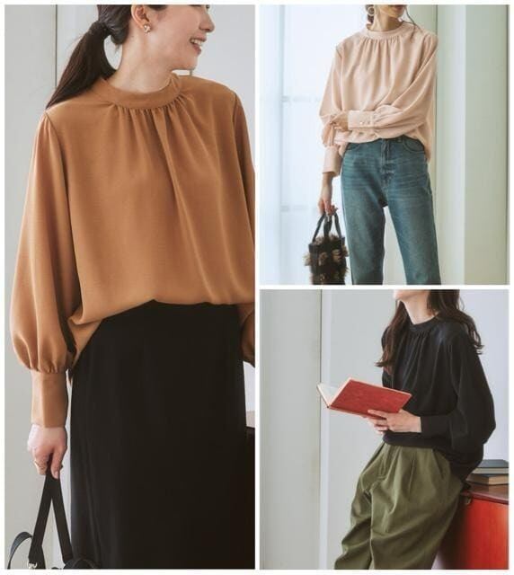 とろみのあるなめらか素材のブラウスを3色セットで♪