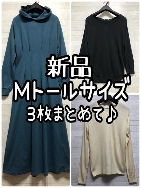 新品☆Mトールサイズ♪パーカーワンピ・Vネックニット3枚まとめて♪☆Q401