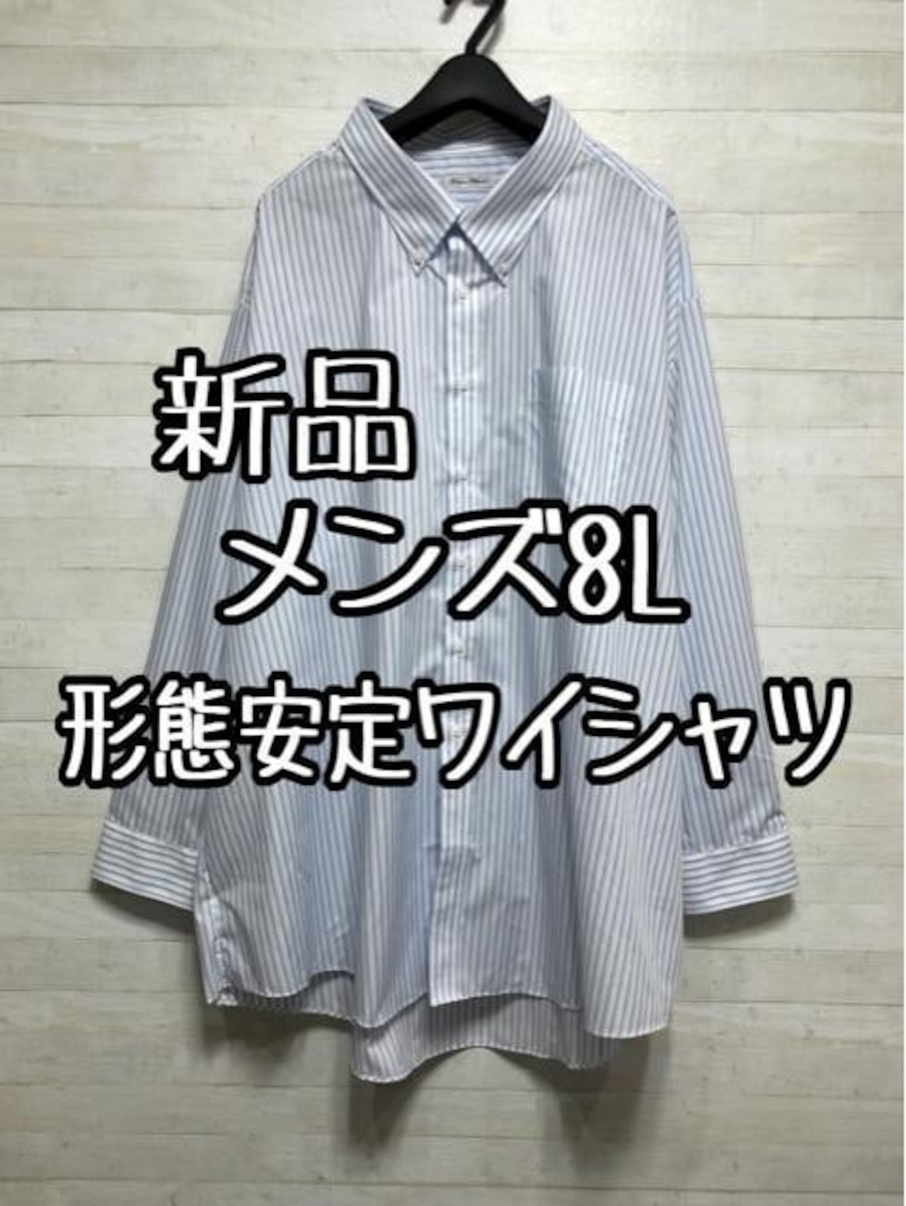 新品☆メンズ8L♪ワイシャツ首56裄90ボタンダウン長袖シャツ☆Q403