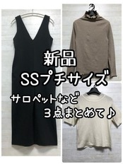 新品☆SSプチサイズ♪きれいめサロペットパンツ黒&トップス2枚♪☆Q408