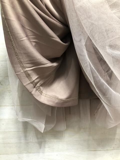 よく伸びるカットソー素材にチュールが