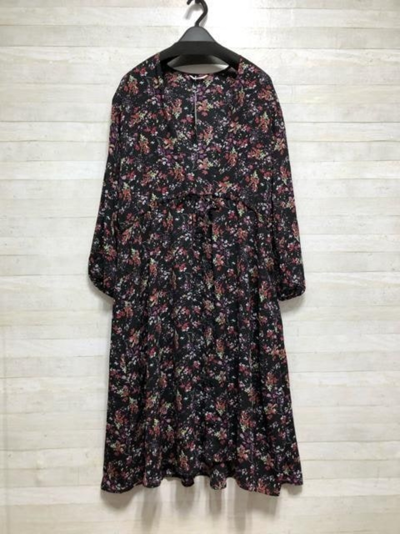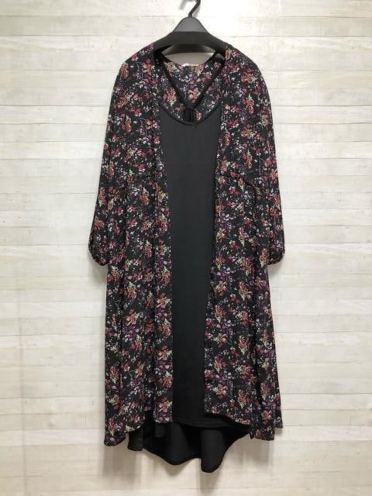 新品☆L♪小花柄薄手ガウンアウター&黒キャミソールワンピース♪☆Q414