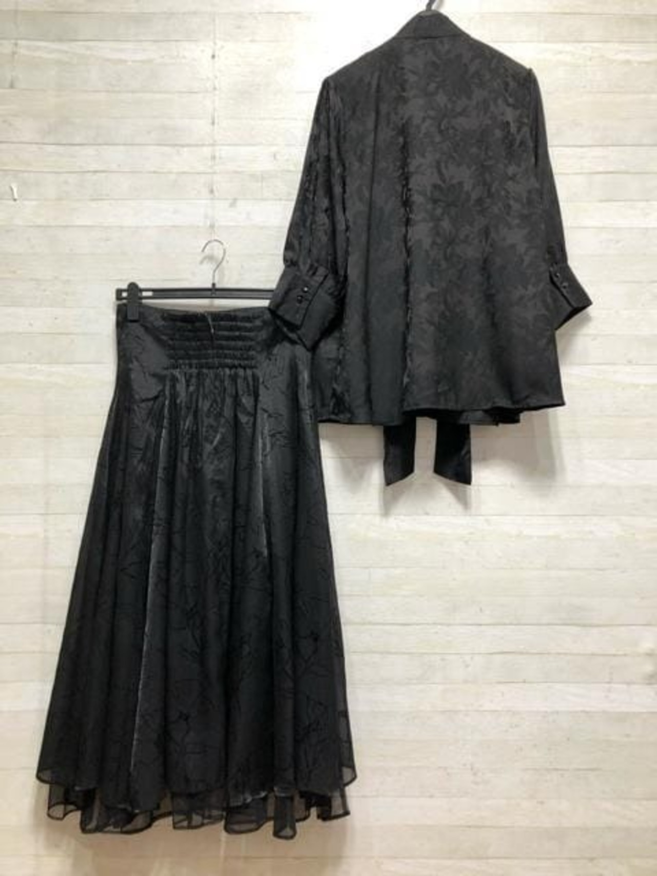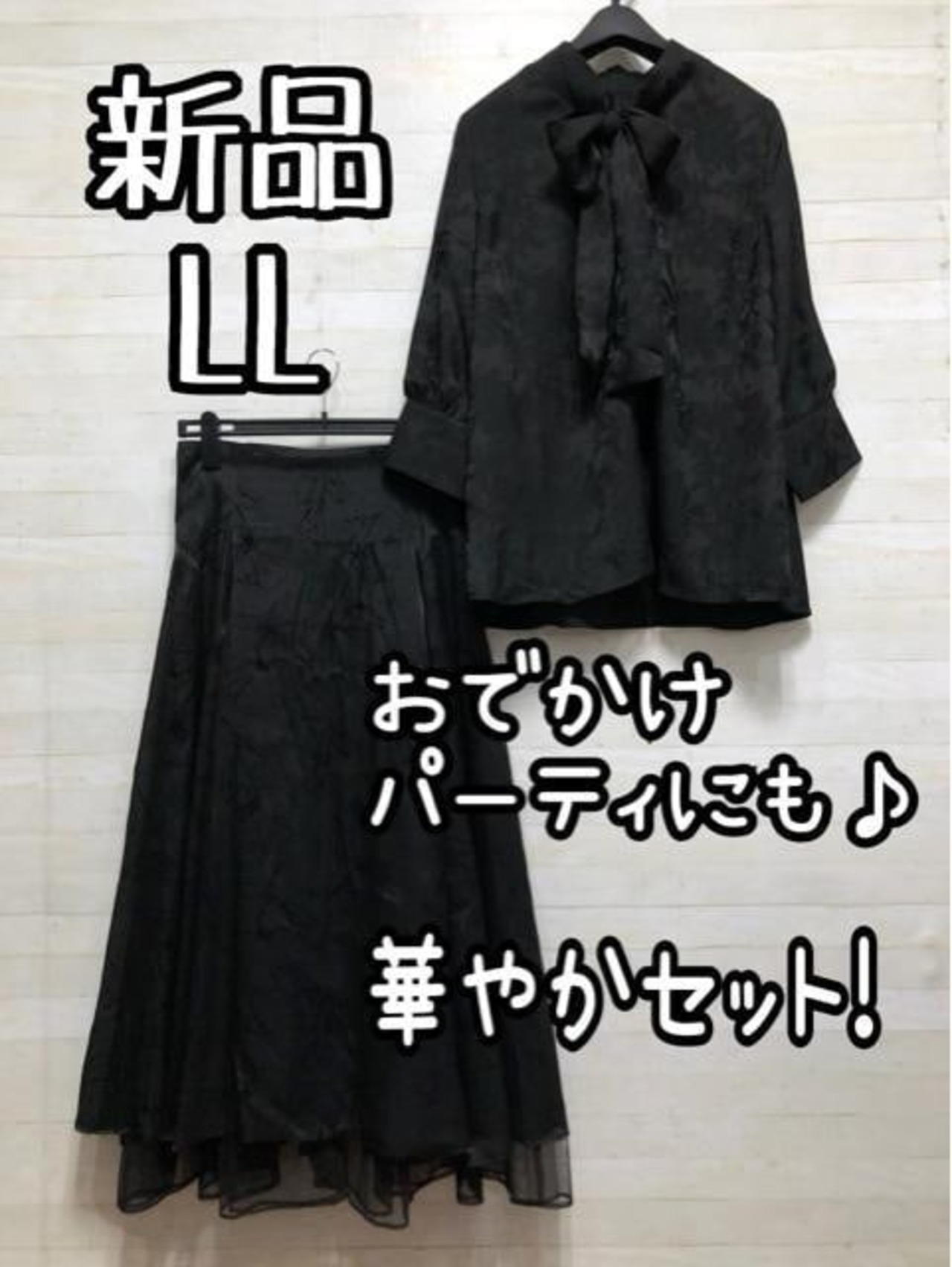 新品☆LL♪黒系♪ジャガードブラウス&華やかロングスカート♪高級感☆Q417
