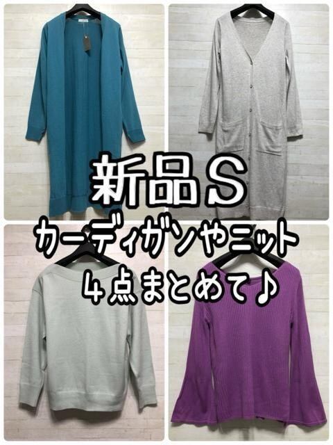 新品☆S♪綿混ロングカーディガンや花粉がつきにくいニット等4枚☆Q419