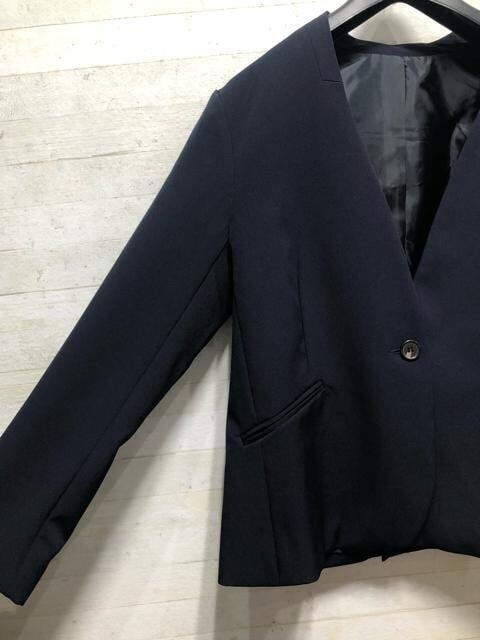 新品☆LL♪紺♪ノーカラージャケット♪カラーレス♪お仕事・フォーマル☆Q137