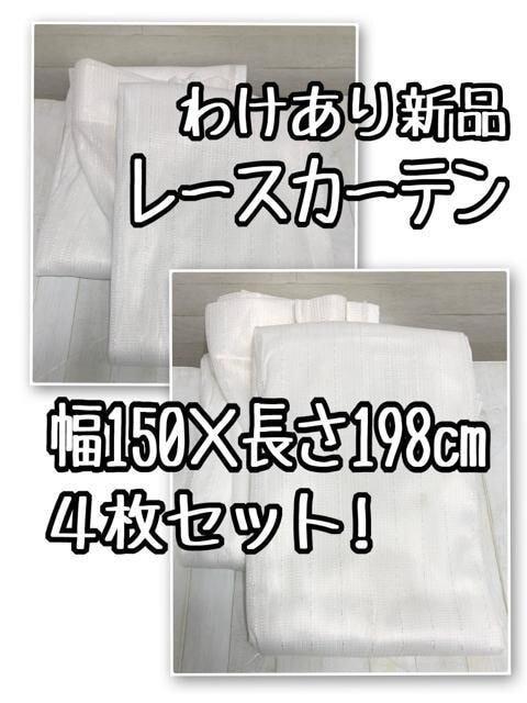 新品わけあり☆幅150×長さ198cmレースカーテン4枚!UVカット☆Q487