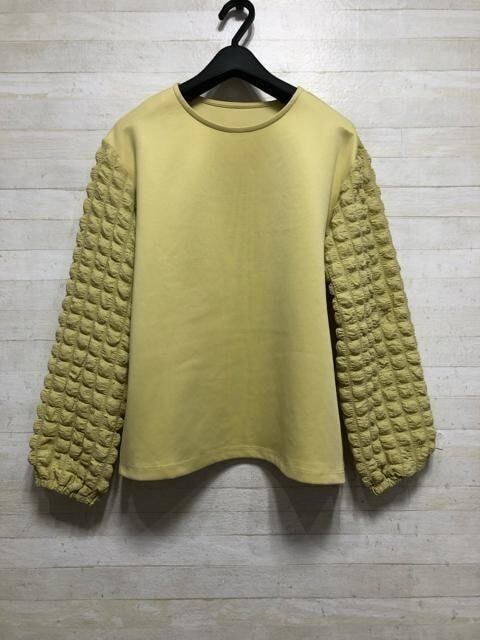 ストレッチ綿素材のパフロングスリーブカットソー