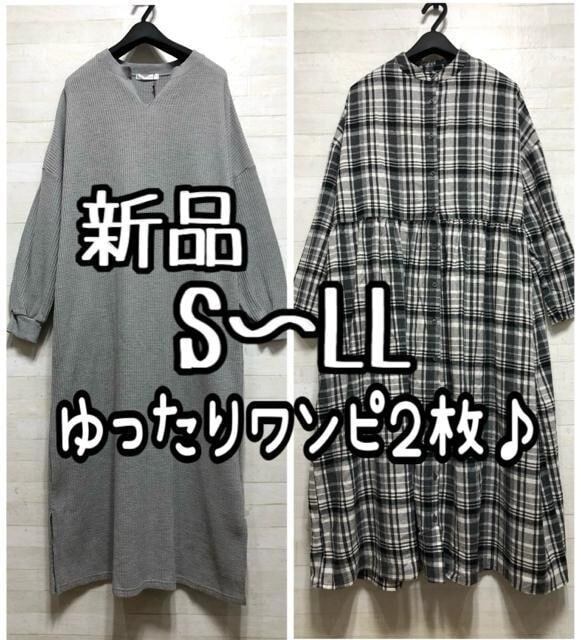 新品☆S~LL♪ゆったりロングワンピース♪ワッフル&シャツワンピ☆Q482