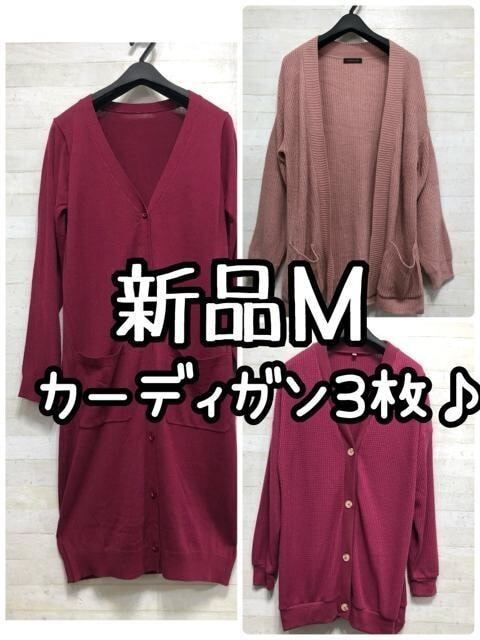 新品☆M♪ワイン赤ピンク系♪カーディガン色々3枚まとめて♪☆Q493