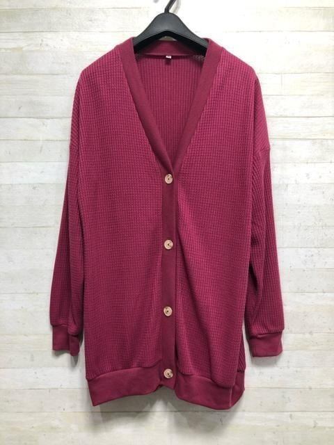 ワッフル素材の気軽なゆったりカーディガン♪