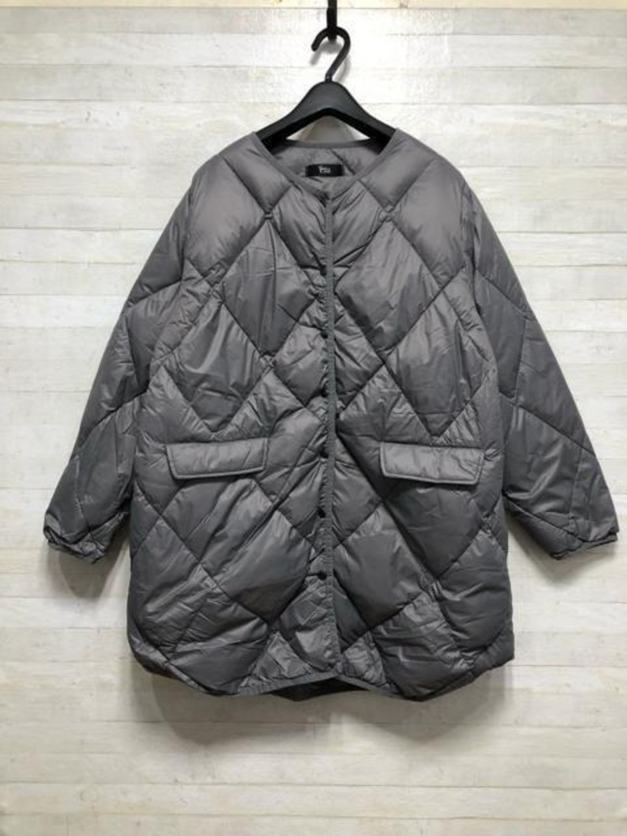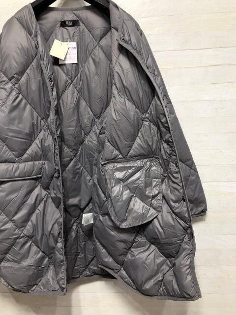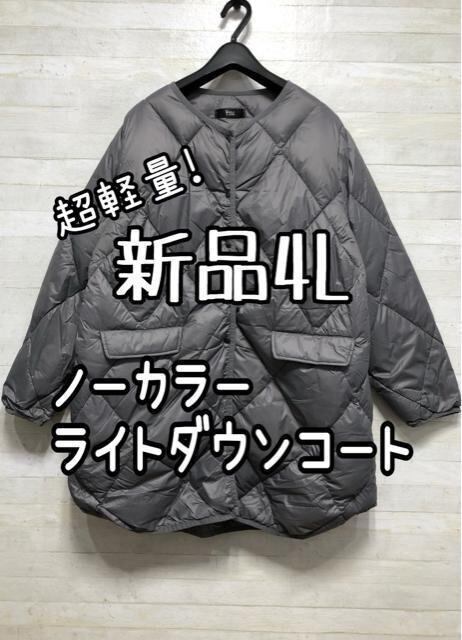 新品☆4L♪グレー系ライトダウンコート♪ノーカラー暖か軽量シンプル☆Q563